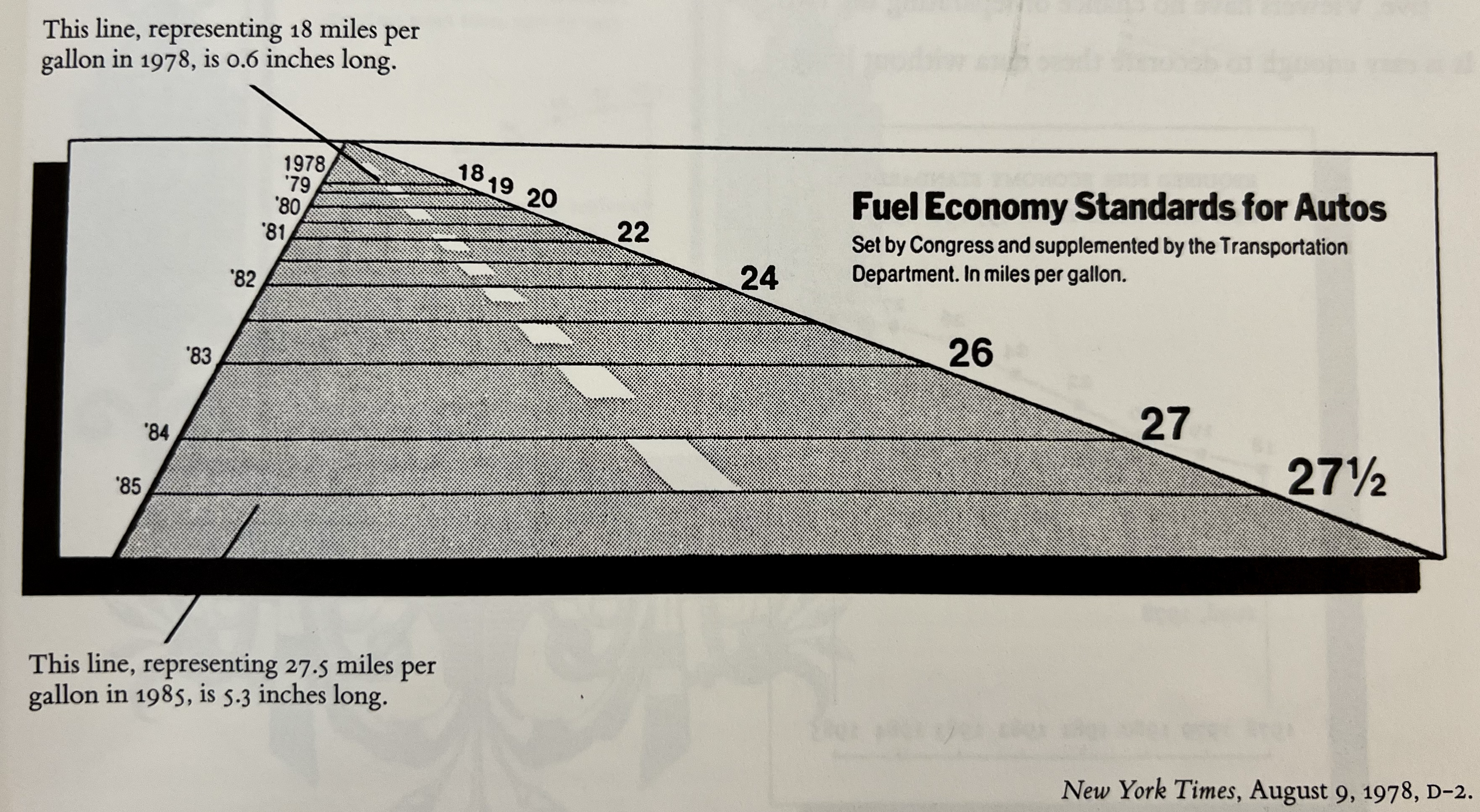 The representation of numbers, as physically measured on the surface of the graphic itself, should be directly proportional to the numerical quantities (pg.56)